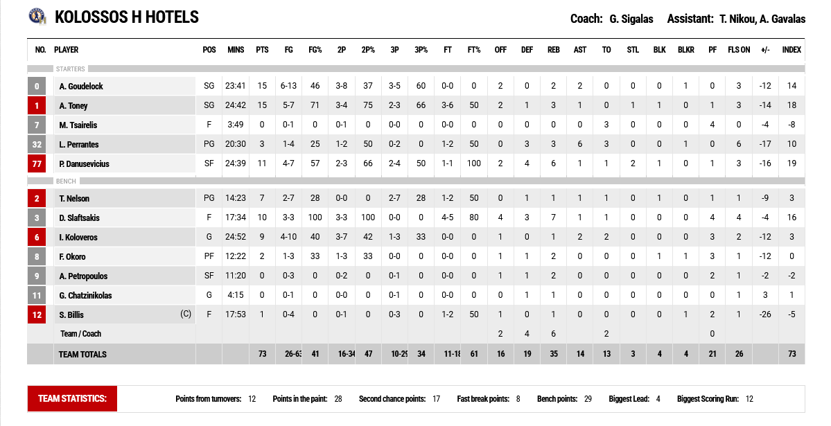 Το τέταρτο δεκάλεπτο ξεκίνησε με ένα ακόμη επί μέρους σερί των γηπεδούχων (11-2 για το 78-54 στο 34') που έδωσαν για τα καλά διαδικαστικό χαρακτήρα στα εναπομείναντα λεπτά. Οι γηπεδούχοι αν και είχαν εξασφαλισμένη τη νίκη δεν χαλάρωσαν, συνέχισαν να είναι ενεργητικοί και στις δύο άκρες του παρκέ, για να πάρουν στο τέλος την πρώτη τους φετινή νίκη στο πρωτάθλημα της GBL με σκορ 98-73, έχοντας παίξει όμορφο μπάσκετ καθόλη τη διάρκεια του ματς.