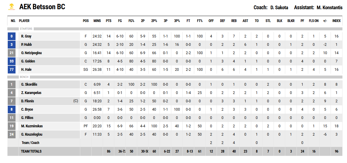 Ξεχώρισαν: Για την "Ένωση" σε καλή μέρα ήταν οι Γκρέι με 14 πόντους και 7 ριμπάουντ και ο Νετζίπογλου με 14 πόντους. Από πλευράς φιλοξενούμενων, ο Παρέντες τελείωσε το ματς με 22 πόντους και 7 ριμπάουντ και ο Γκάουντλοκ με 20 πόντους .