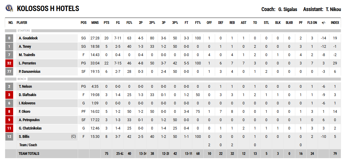 Ο "δικέφαλος" έφτασαν στην τρίτη τους νίκη στο πρωτάθλημα(3-3) με σκορ 86-75 απέναντι στον αξιομάχο Κολοσσό που "ξέμεινε" από δυνάμεις και παρέμεινε στην μία νίκη (1-5). Οι γηπεδούχοι είχαν ένα σχετικά ήσυχο απόγευμα στο κλειστό των Λιοσίων, με τους Κουζμίνσκας( 15 πόντοι), Γκρέι( 14 πόντοι, 7 ριμπάουντ) και Νετζίπογλου (14 πόντοι) να είναι πρωταγωνιστές στην νίκης της "Ένωσης". Οι Περάντες (22 πόντοι, 7 ριμπάουντ) και Γκάουντλοκ(20 πόντοι) ήταν οι μοναδικοί διψήφιοι για την ομάδα του Κολοσσού και διακριθέντες της ομάδας τους.