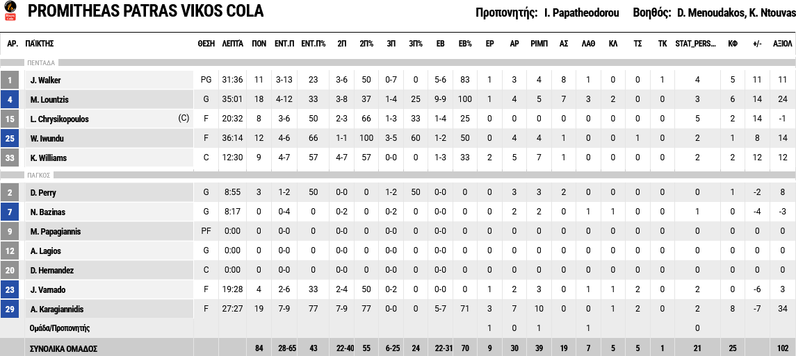 Προμηθέας - ΑΕΚ 84-76: Λούντζης και Καραγιαννίδης οδήγησαν στην νίκη τους Πατρινούς, σε επεισοδιακό ματς με διακοπές και εκκένωση της "κιτρινόμαυρης" εξέδρας
