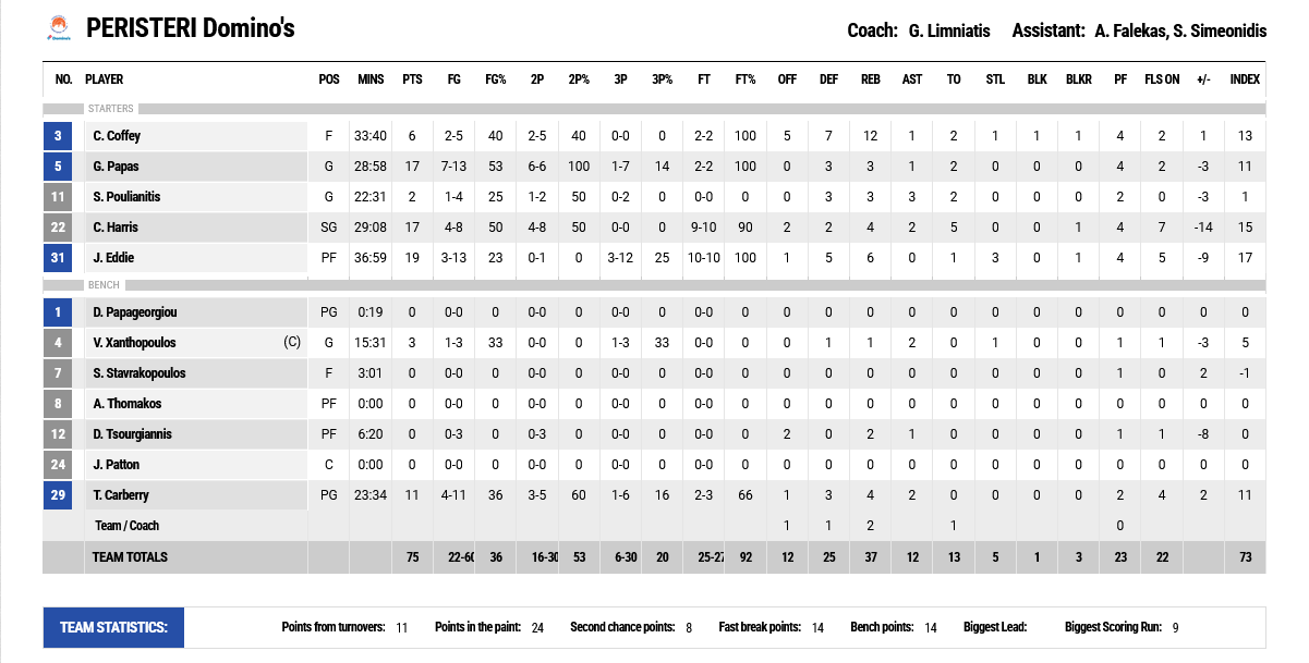 Ξεχώρισαν: Συμπαραστάτες του Βαρνάντο ήταν οι Ιβούντου και Ρις με 19 και 14 αντίστοιχα, οι Έντι με 19, Χάρις και Πάπας με 17 διακρίθηκαν από τους γηπεδούχους