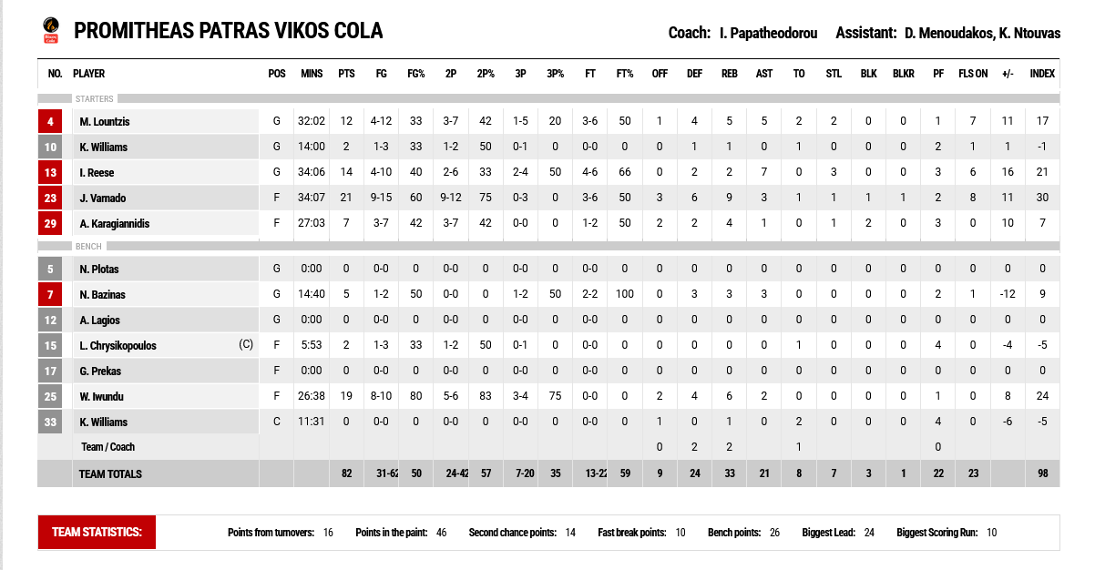Η μεγαλύτερη διαφορά: +24 υπέρ του Προμηθ΄εα, 32-56 στο 22'