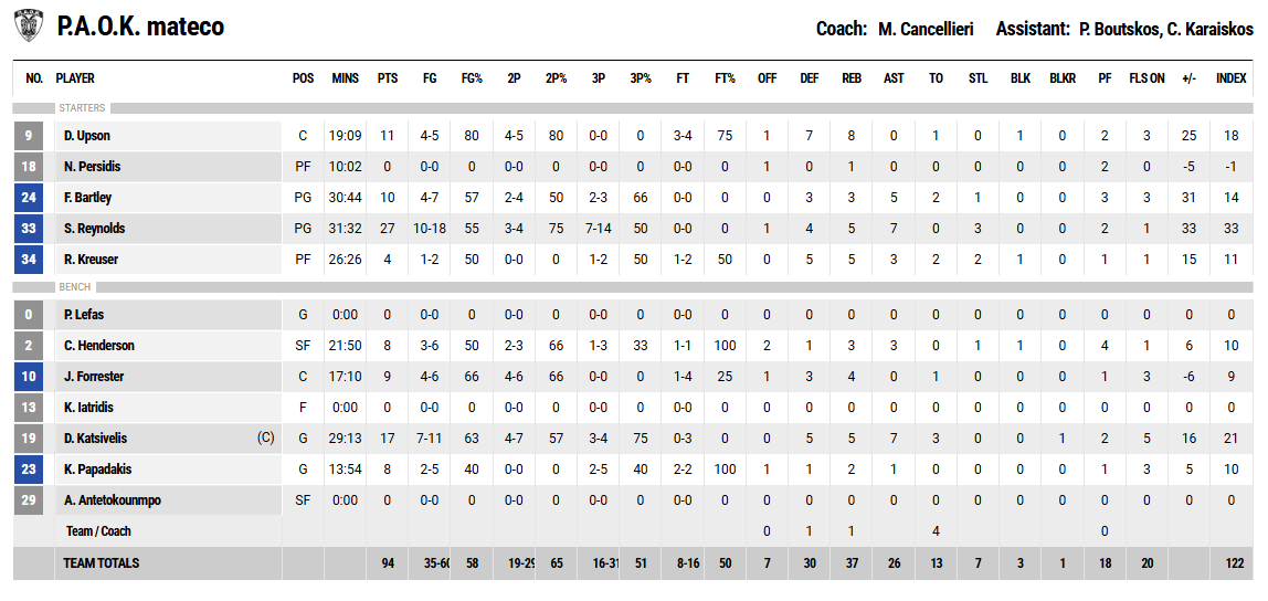 On fire: Ο Ρέινολντς με 27 πόντους(10/18 δίπονται και 7/14 τρίποντα), 5 ριμπάουντ και 7 ασσίστ.