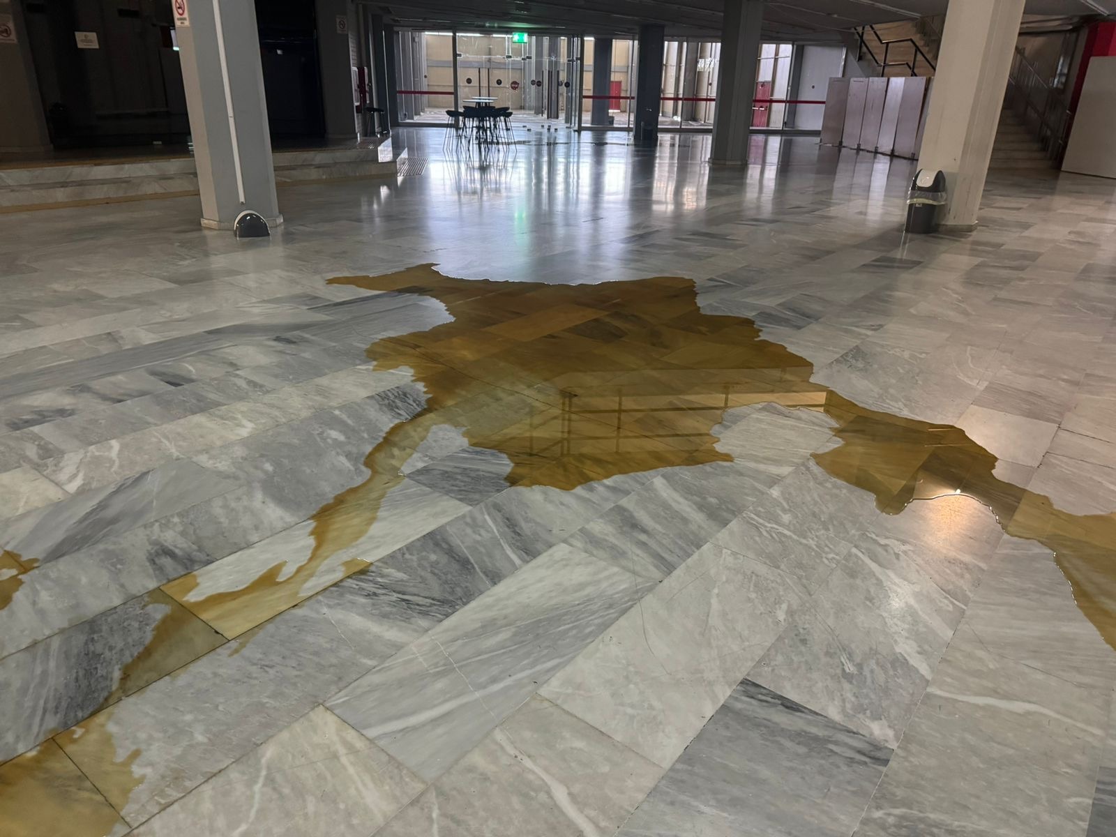 Είναι τέτοιο το μέγεθος της ζημιάς, που πλέον βρίσκεται στον… αέρα η αναμέτρηση της Κυριακής (29/12, 17:15) με το Λαύριο για την 12η αγωνιστική της GBL, ενώ ο κίνδυνος να υποστεί ζημιά το παρκέ του Ολυμπιακού για όλη την σεζόν, είναι κάτι παραπάνω από μεγάλος!
