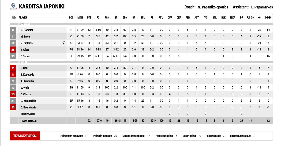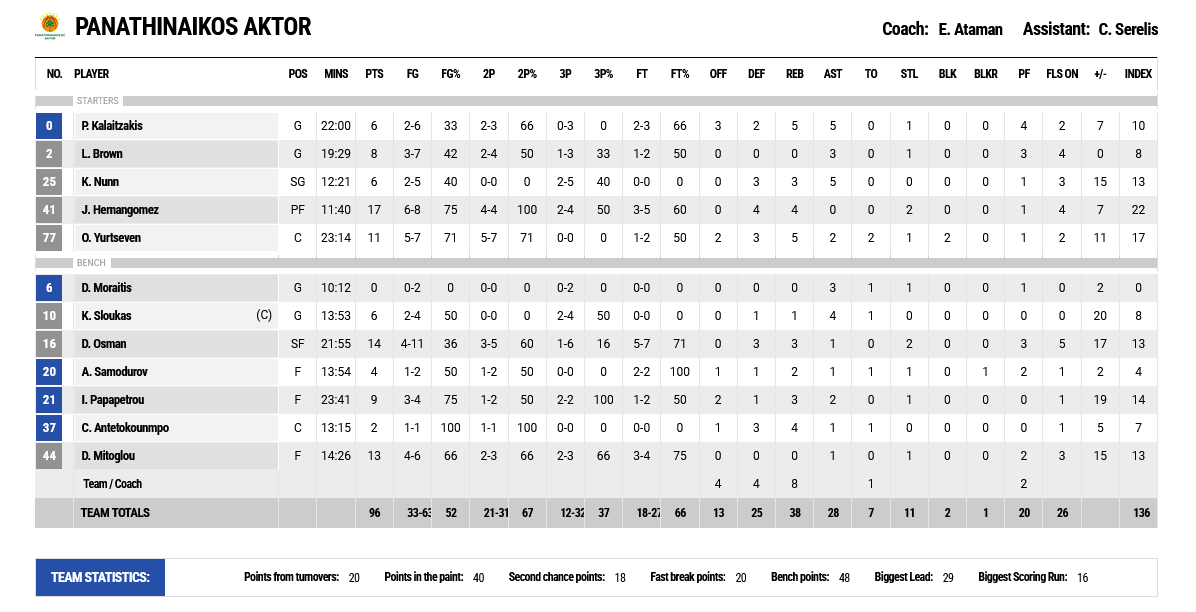 Ξεχώρισαν: Ο Οσμάν με 14 πόντους και ο Μήτογλου με 13 ήταν συμπαραστάτες του Ισπανού φόργουορντ, από τους Θεσσαλούς 14 είχε ο Άλεν