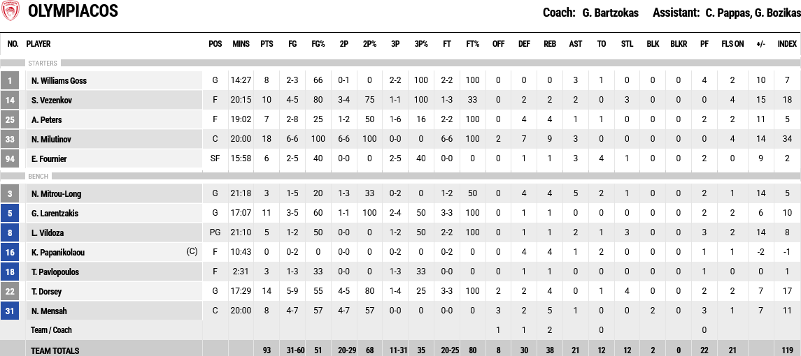 Η μεγαλύτερη διαφορά: +27 για τον Ολυμπιακό (82-55) στο 32’