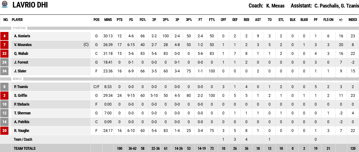 Ξεχώρισαν: Από πλευράς γηπεδούχων οι Περάντες με 20 πόντους και ΜακΓκλιν με 11, ενώ για τους νικητές ο Μουράτος είχε 17 πόντους και ο Βον με 16.
