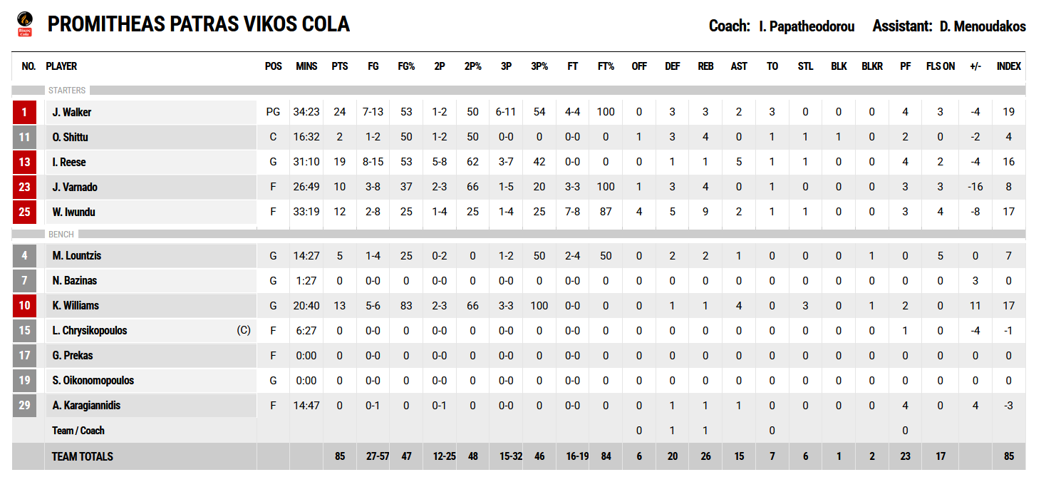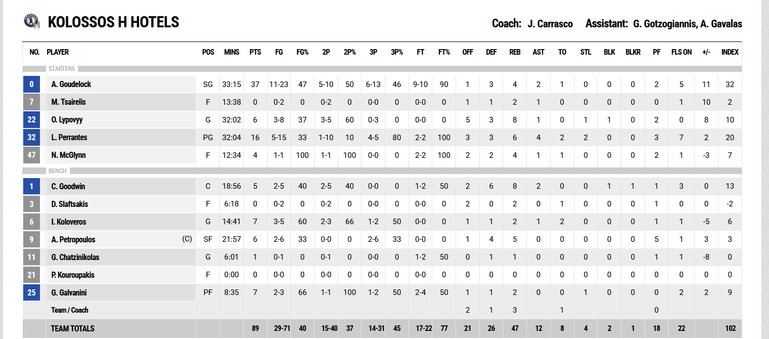 Ξεχώρισαν: Aπό Κολοσσό Παρέντες με 16 πόντους, 6 ριμπάουντ, 4 ασίστ και 4/5 τρίποντα και από τον Προμηθέα ο Τζόρνταν Γουόκερ με 24 πόντους, 3 ριμπάουντ, 4/4 ελεύθερες βολές και 6/11 τρίποντα