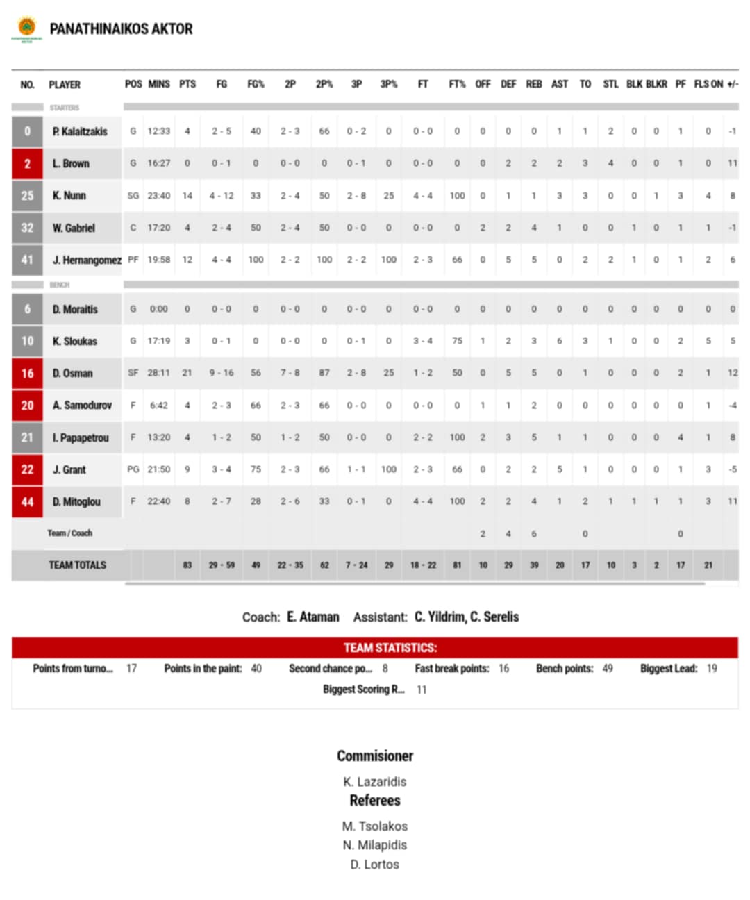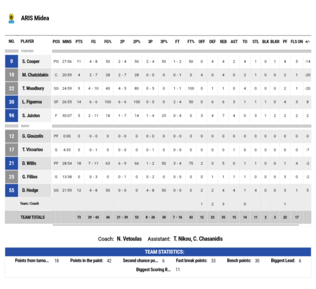 Ξεχώρισαν: Από τον Παναθηναϊκό διακρίθηκαν ο Ναν και ο Χουάντσο Ερνανγκόμεθ με 14 και 12 πόντους αντίστοιχα. Από τον Άρη έβαλαν ο Γουίλις (18 πόντους), Φιγκερόα (14 πόντους), ο Χοτζ (12 πόντους) και ο Κούπερ (11 πόντους).