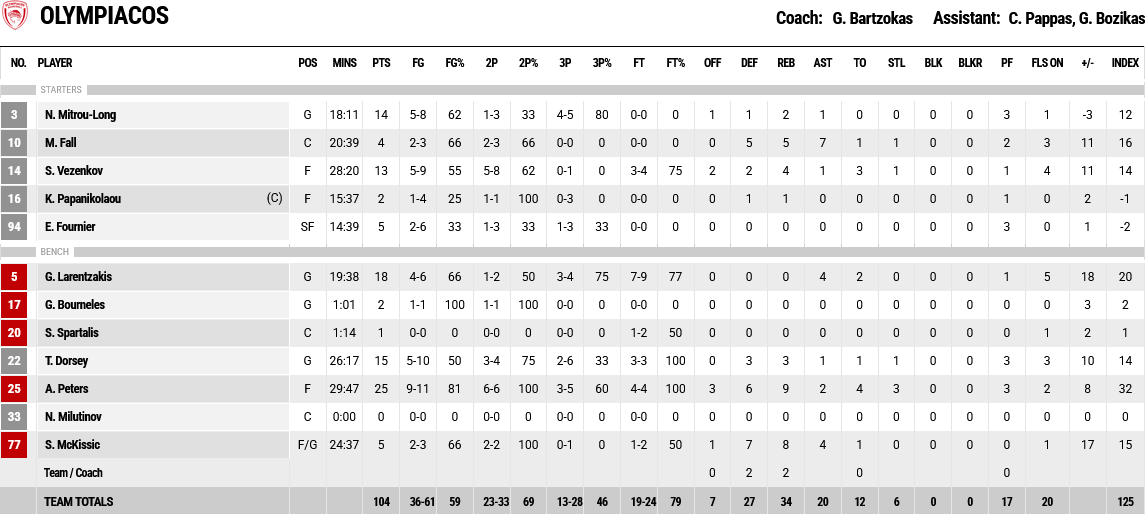 Οn fire: Εξαιρετικός ο Άλεπ Πίτερς και ως πεντάρι (!), με τον Αμερικανό να τελειώνει το ματς με 25 πόντους και εννιά ριμπάουντ.