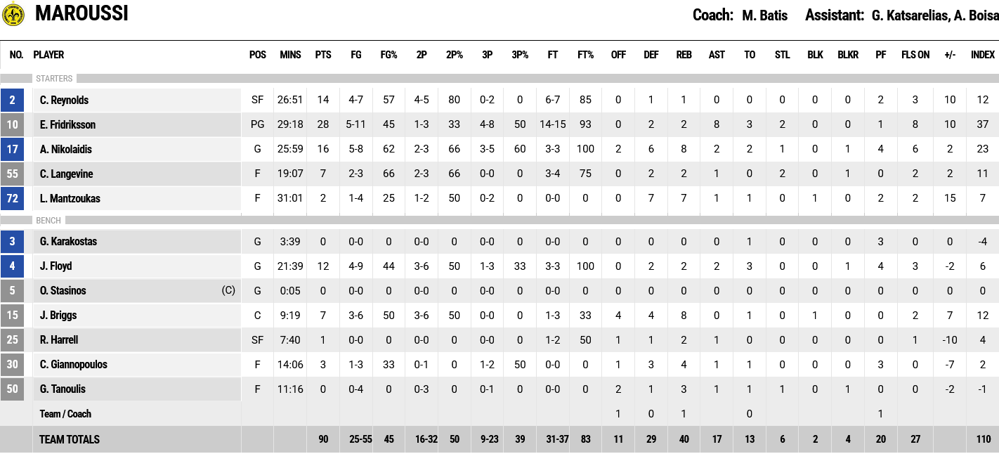 Για 30 λεπτά το Μαρούσι έπαιζε με… σπασμένα τα φρένα, φτάνοντας μέχρι το +29, με οδηγό έναν ασταμάτητο Φρίντρικσον. Στο τελευταίο δεκάλεπτο, το Λαύριο επιχείρησε μια επική επιστροφή, όμως… ξέμεινε από χρόνο, με το συγκρότημα του Αγ. Θωμά να φτάνει στην νίκη με 90-85, στο ντεμπούτο του Μάριου Μπατή σ τον πάγκο του, αποτέλεσμα που το κρατά στο… κόλπο της παραμονής.