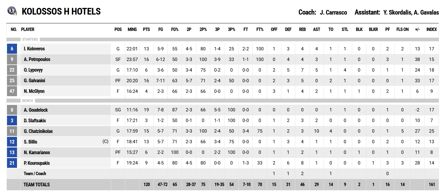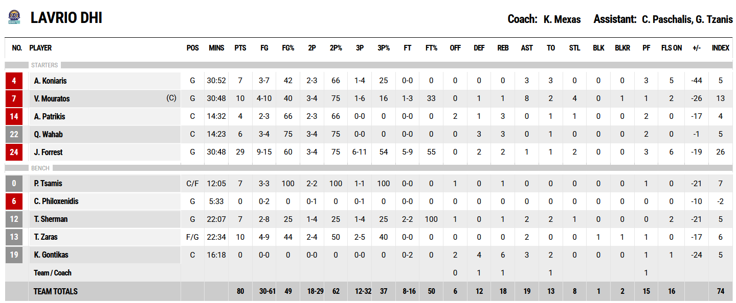 Ξεχώρισαν: Από τον Κολοσσό ξεχώρισε ο Χατζηνικόλας με 16 πόντους, καθώς και ο Πετρόπουλος με πόντους και ριμπάουντ. Από πλευράς Λαυρίου, πολύ καλή εμφάνιση σημείωσε ο Φόρεστ με πόντους και τρίποντα.