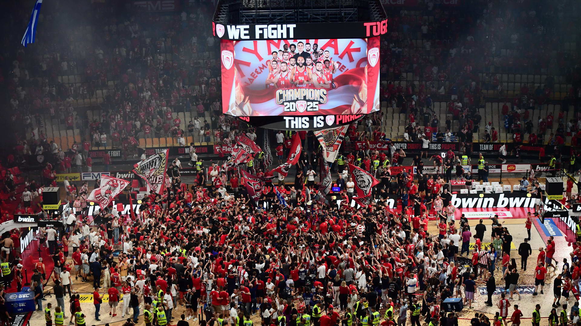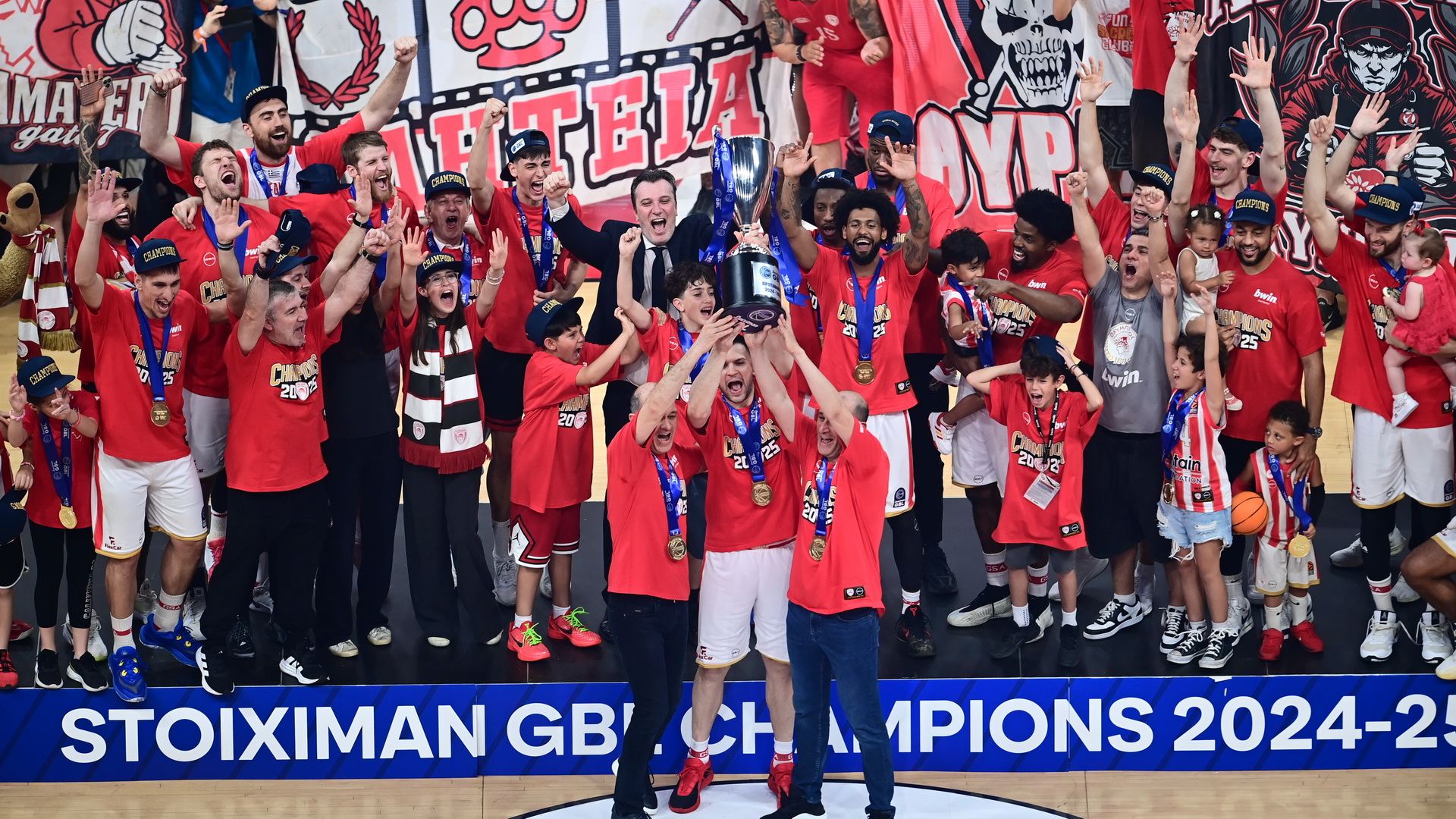 Ο Ολυμπιακός έφτασε πανάξια στην κατάκτηση του πρωταθλήματος και ο Κώστας Παπανικολάου ύψωσε ψηλά στον ουρανό του ΣΕΦ, το βαρύτιμο τρόπαιο.