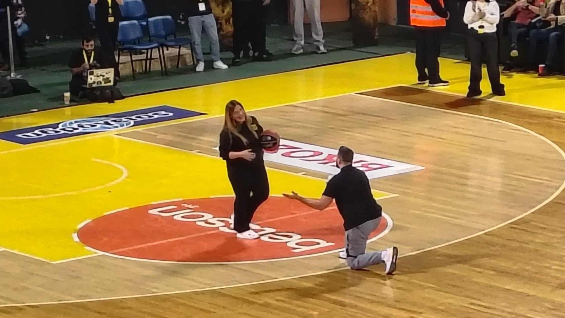 Φίλαθλος στο ημίχρονο της αναμέτρησης Άρης - Κολοσσός Ρόδου για την 2η αγωνιστική του ελληνικού πρωταθλήματος έκανε πρόταση γάμου στην αγαπημένη του.