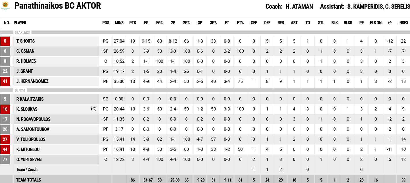 Ξεχώρισαν: Ακόμα ένα εξαιρετικό παιχνίδι από τον Ντόρσεϊ, με 16 πόντους, πέντε ριμπάουντ και οκτώ ασίστ, με τους Γουόρντ και Μιλουτίνοβ να έχουν από 12 πόντους έκαστος. Για τον Παναθηναϊκό, εκπληκτικός ήταν ο Σορτς με 19 πόντους, με τον Τολιόπουλο να… ντύνεται Ναν για ένα δεκάλεπτο, όπου και πέτυχε 14 πόντους.