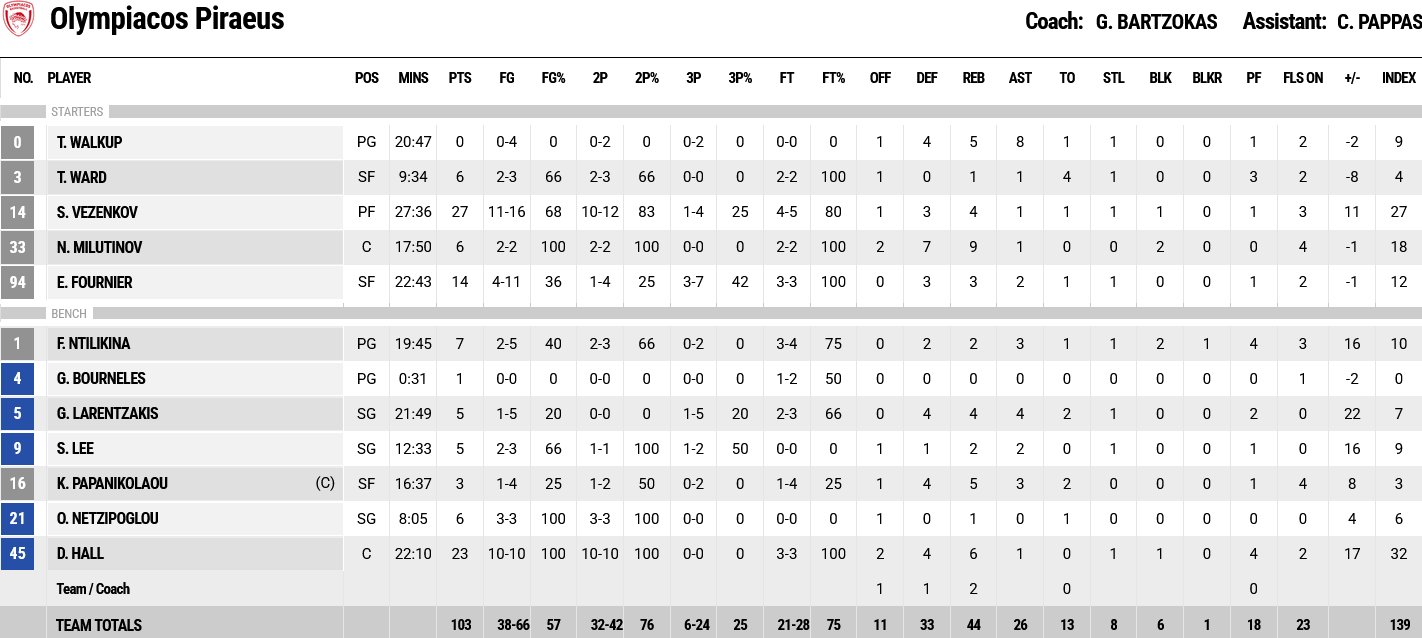 Ξεχώρισαν: Στους 27 πόντους με… σβηστές μηχανές, σταμάτησε ο Σάσα Βεζένκοβ, με τον Φουρνιέ να… ξεμπουκώνει με 14 πόντους. Για τον Ηρακλή, Ράιτ – Φόρμαν και Ντάρκο – Κέλι είχαν από 20 πόντους έκαστος, σκοράροντας μαζί 11/18 τρίποντα!