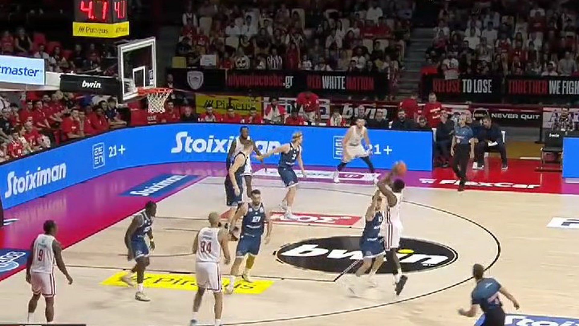 Μάλιστα, ο Αμερικανός άσος των «ερυθρολεύκων» σημείωσε και τους πρ΄ωτους του πόντους με την ομάδα του Πειραιά, πετυχαίνοντας ένα τρίποντο στην αρχή της δεύτερης περιόδου.