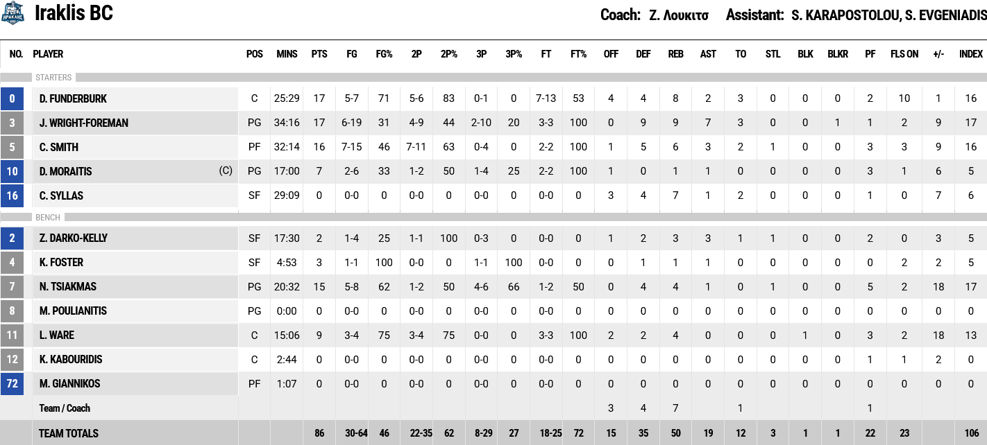 Η μεγαλύτερη διαφορά: Οι 17 πόντοι για τον Ηρακλή στο 39' λεπτό (86-69)