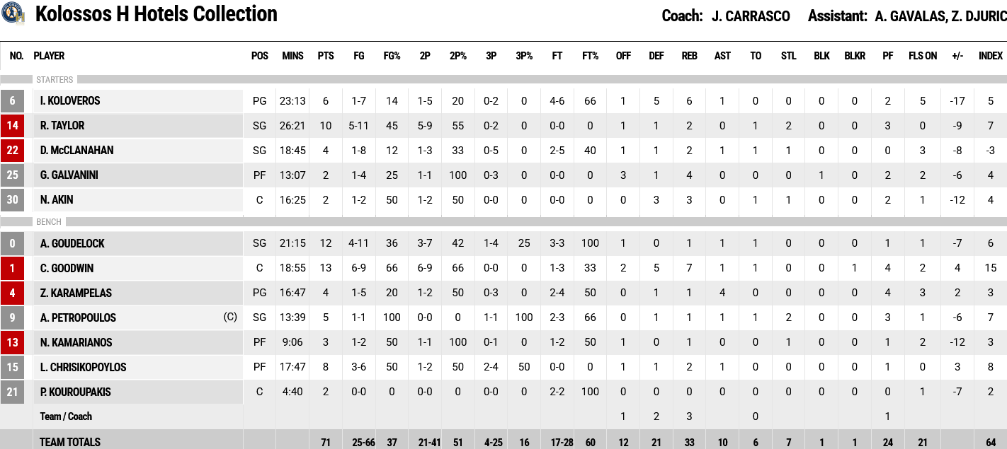 Ξεχώρισαν: Απο τον Ηρακλή είχαν ο Σμιθ και ο Τσιακμάς με 16 και με 15 πόντους αντίστοιχα, ενώ από τον Κολοσσό Ρόδου διακρίθηκαν οι Γκούντγουιν και Γκάουντλοκ με 13 και 12 πόντους.