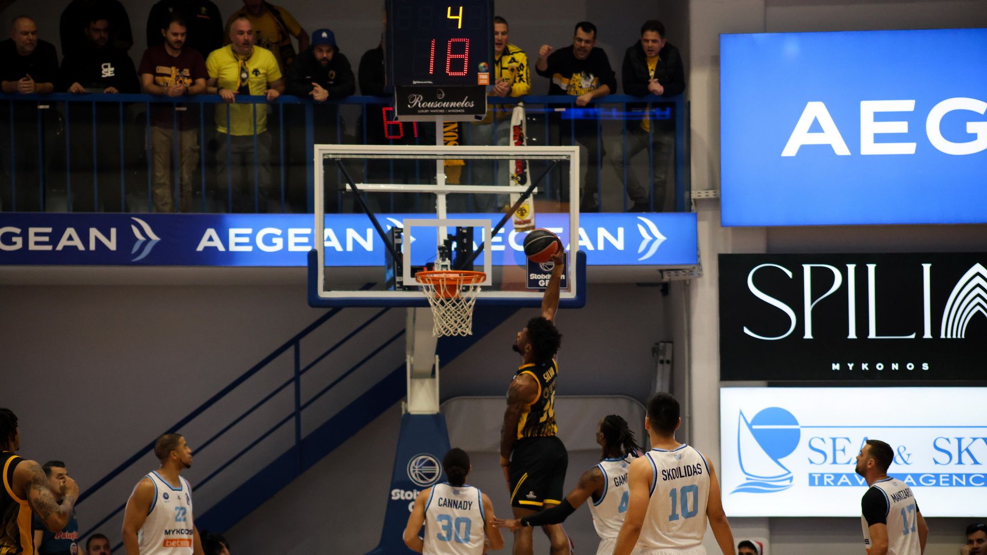 Ξεχώρισαν: Εξαιρετικός για ακόμα ένα ματς ο Σίλβα, με 16 πόντους και οκτώ ριμπάουντ. Για την Μύκονο, Ρέι και Κάναντι είχαν από 16 πόντους και Χέσον με Άπλμπι από 15.