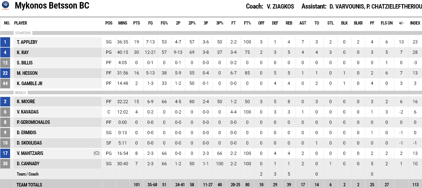 Η μεγαλύτερη διαφορά: +7 για την Μύκονο (101-94) στο 40’