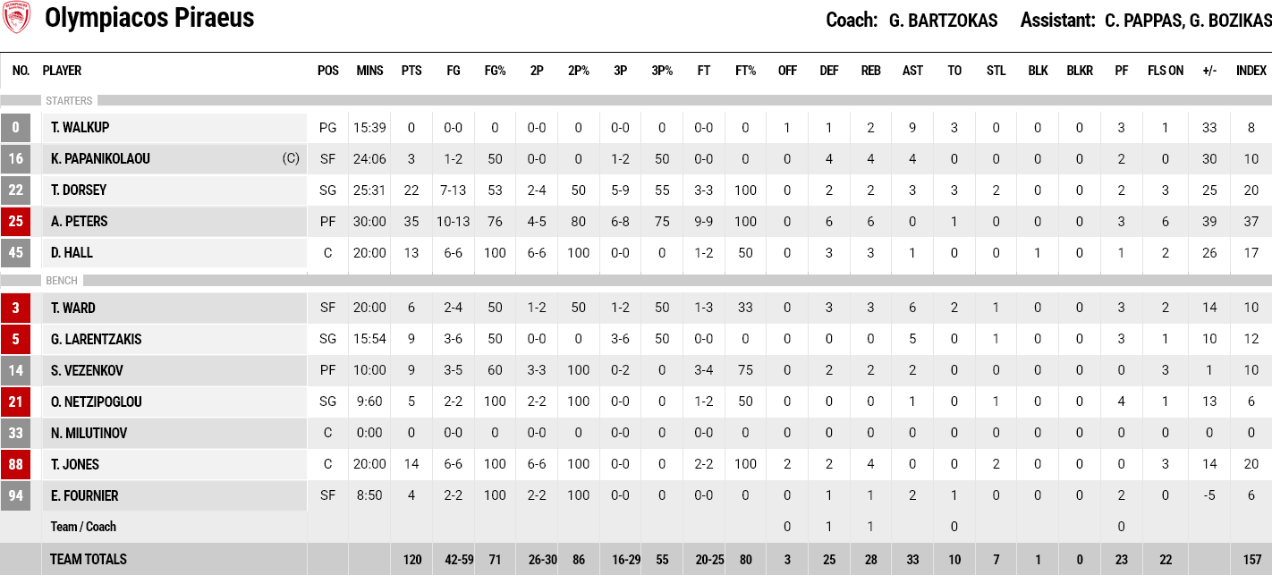 Καρδίτσα – Ολυμπιακός 80-120: Θρύλος – εξπρές με «καυτούς» Ντόρσεϊ, Πίτερς και «διψήφιο» Τζόουνς