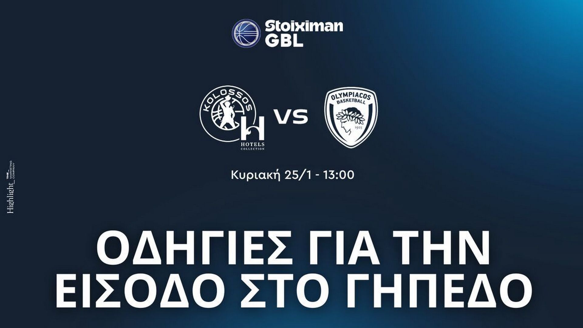 Ο Κολοσσός υποδέχεται τον Ολυμπιακό, το μεσημέρι της Κυριακής (25/1, 13:00), με την διοίκηση των Νησιωτών, με ανακοίνωση της, να ενημερώνει τους φίλους της ομάδας, για την ομαλή προσέλευση και είσοδο τους στο κλειστό.