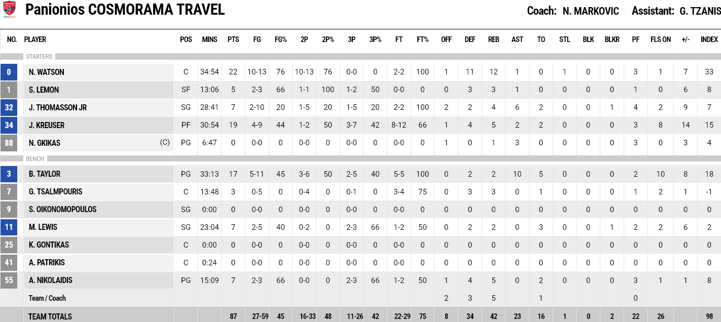 Πανιώνιος – Μύκονος 87-76: Τα… πήρε όλα με «διπλό» Γουότσον