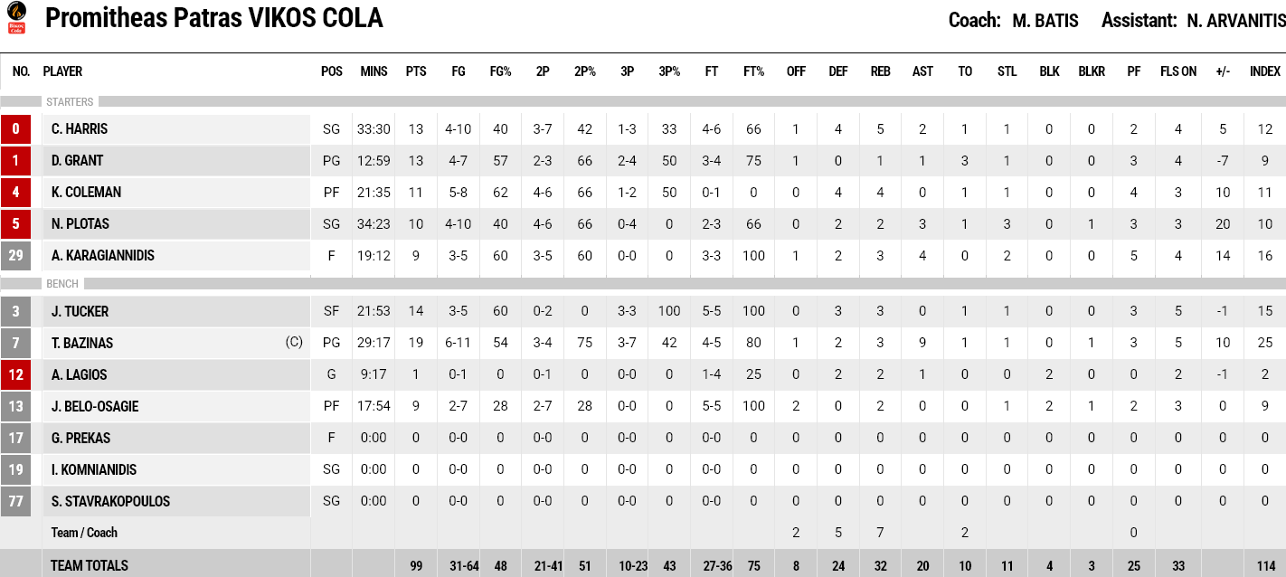 Αν και η ομάδα από την Πάτρα είχε διαφορά 18 πόντων με το τρίποντο του Τάκερ (79-61, 31' λεπτό), οι νησιώτες πάλεψαν και έριξαν την απόσταση στους εννέα πόντους μετά το τρίποντο του Χέσον (82-73, 35' λεπτό) και το