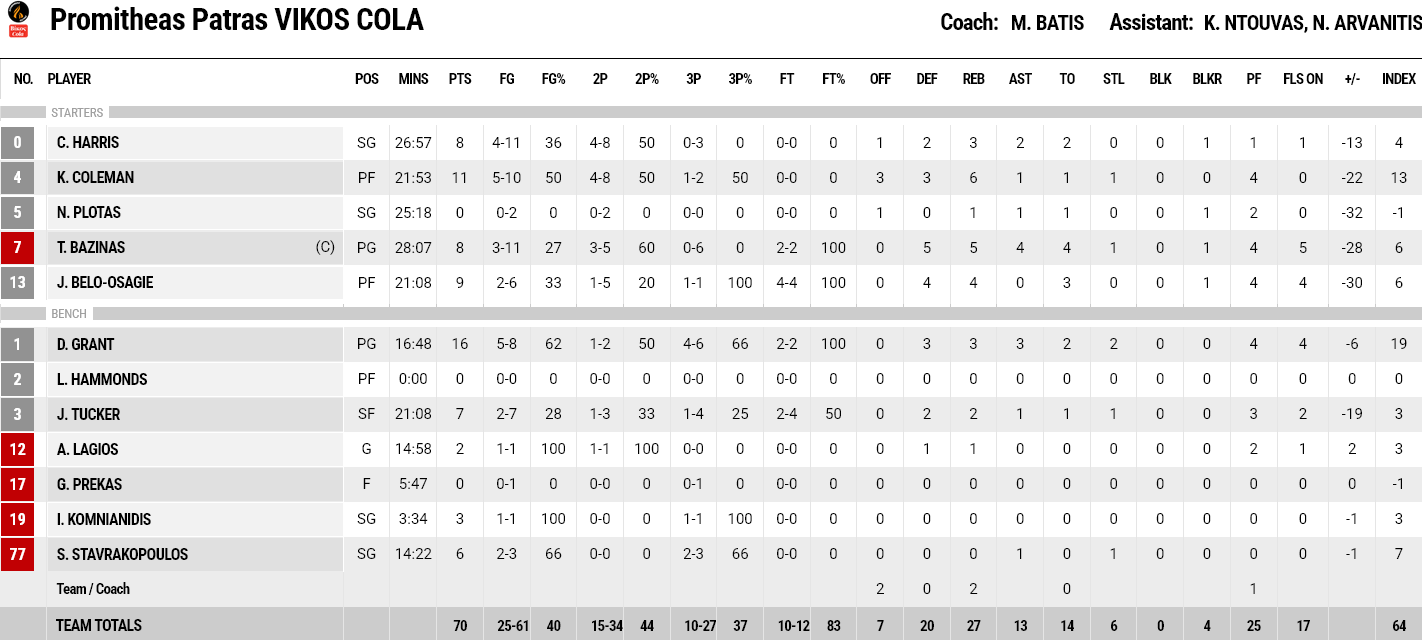 Ξεχώρισαν: Από τον ΠΑΟΚ διακρίθηκαν οι Άλλεν και Ντίμσα από 13 πόντους έκαστος. Από τον Προμηθέα σκόραραν οι Γκραντ και Κόλμαν από 16 και 11 πόντους αντίστοιχα.