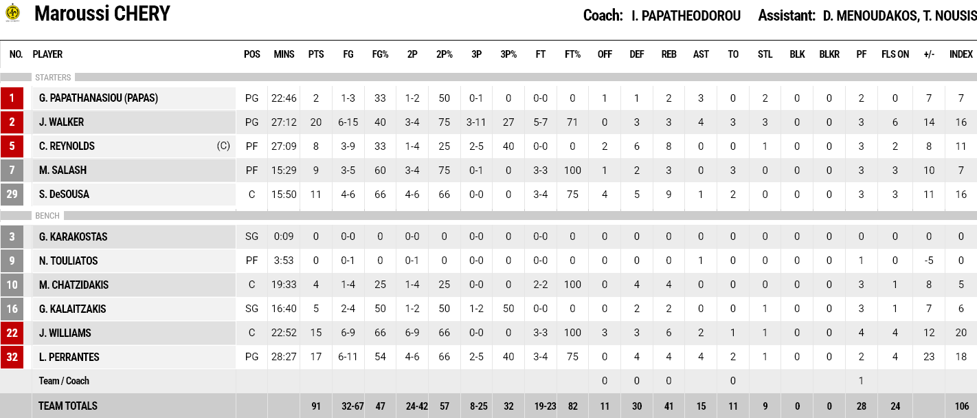 Ξεχώρισαν: Από το Μαρούσι επίσης έβαλαν οι Περάντες και Γουίλιαμς από 17 και 15 πόντους αντίστοιχα. Από τον Ηρακλή διακρίθηκαν οι Φάντεμπεργκ (11 ριμπάουντ και 3 ασίστ) και Έντλερ Ντέιβις με 16 και 15 πόντους.