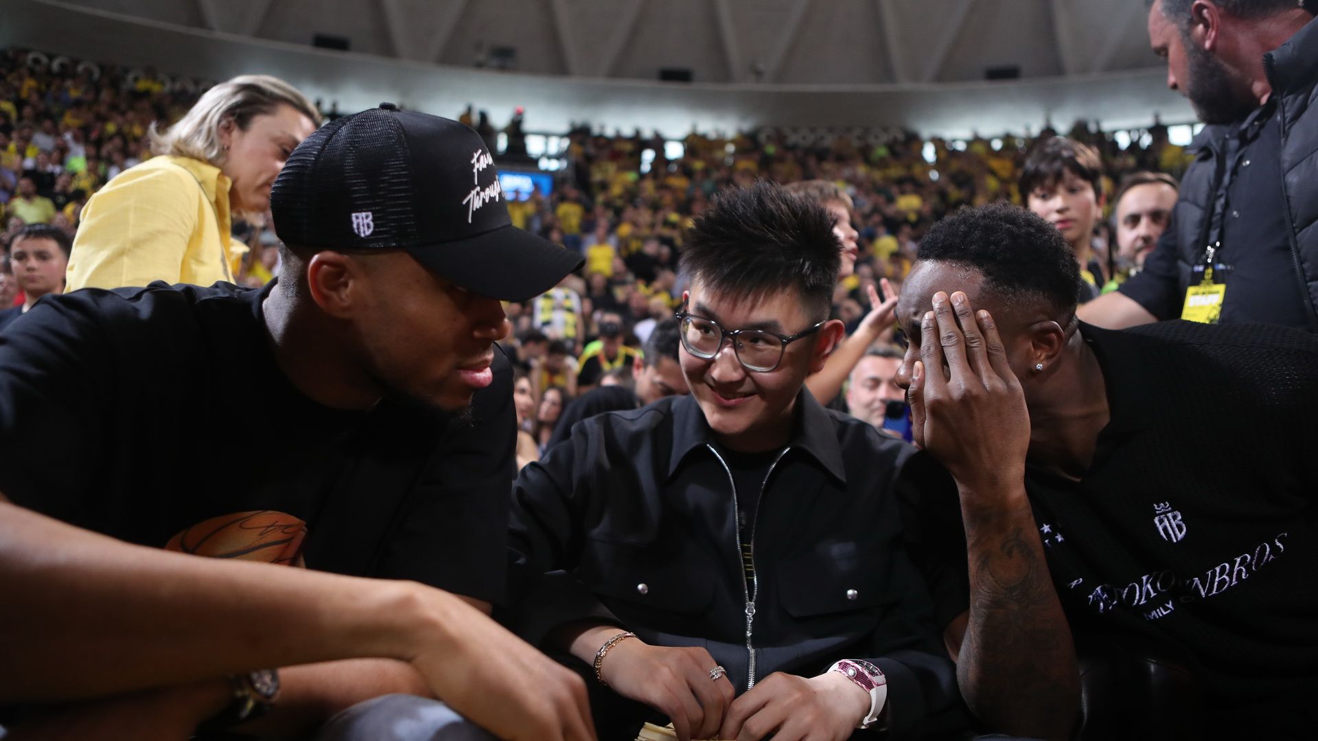 Ο «Greek Freak», μαζί με τον αδελφό του Θανάση, αλλά και την μητέρα του Βερόνικα, βρίσκονται στο «Αλεξάνδρειο», δίπλα στον ιδιοκτήτη της ΚΑΕ Άρης, Ρίτσαρντ Σιάο, με τους φίλους των «κιτρινόμαυρων» να του επιφυλάσσουν αποθεωτική υποδοχή, καλώντας τον να αφήσει το ΝΒΑ και να… σηκώσει πρωτάθλημα με την ομάδα της Θεσσαλονίκης!
