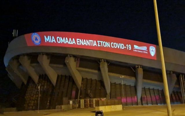 Ηχηρό μήνυμα ενότητας στη μάχη ενάντια στην πανδημία στέλνουν η Γενική Γραμματεία Πολιτικής Προστασίας, το Στάδιο Ειρήνης και Φιλίας και η ΚΑΕ Ολυμπιακός με το σύνθημα «Μια ομάδα ενάντια στον COVID-19».