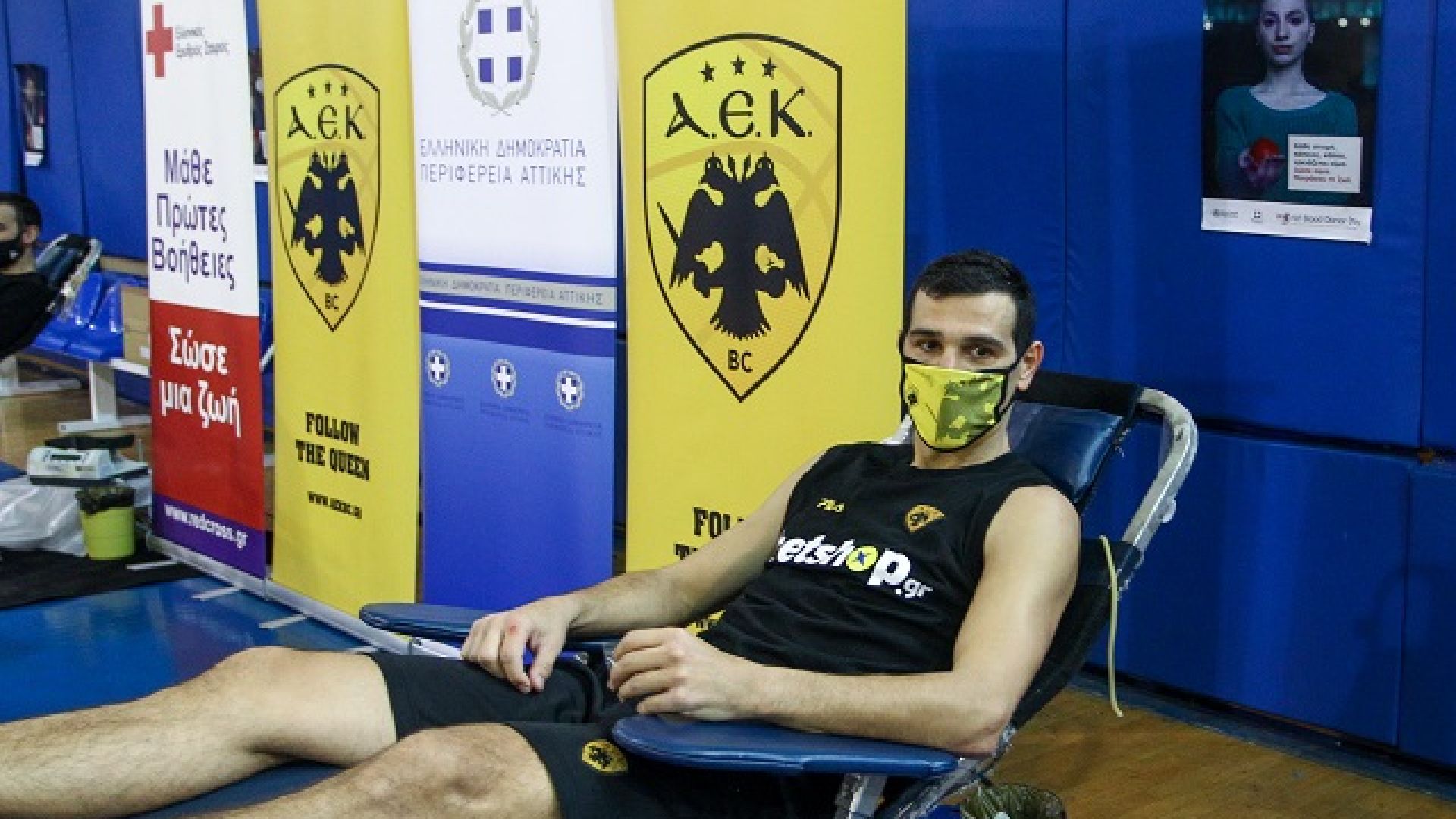 Τα μέλη της ΑΕΚ συμμετείχαν σε εθελοντική αιμοδοσία στο κλειστό του ΟΑΚΑ, προκειμένου να μαζέψουν αίμα για το Γενικό Νοσοκομείο Αθηνών.