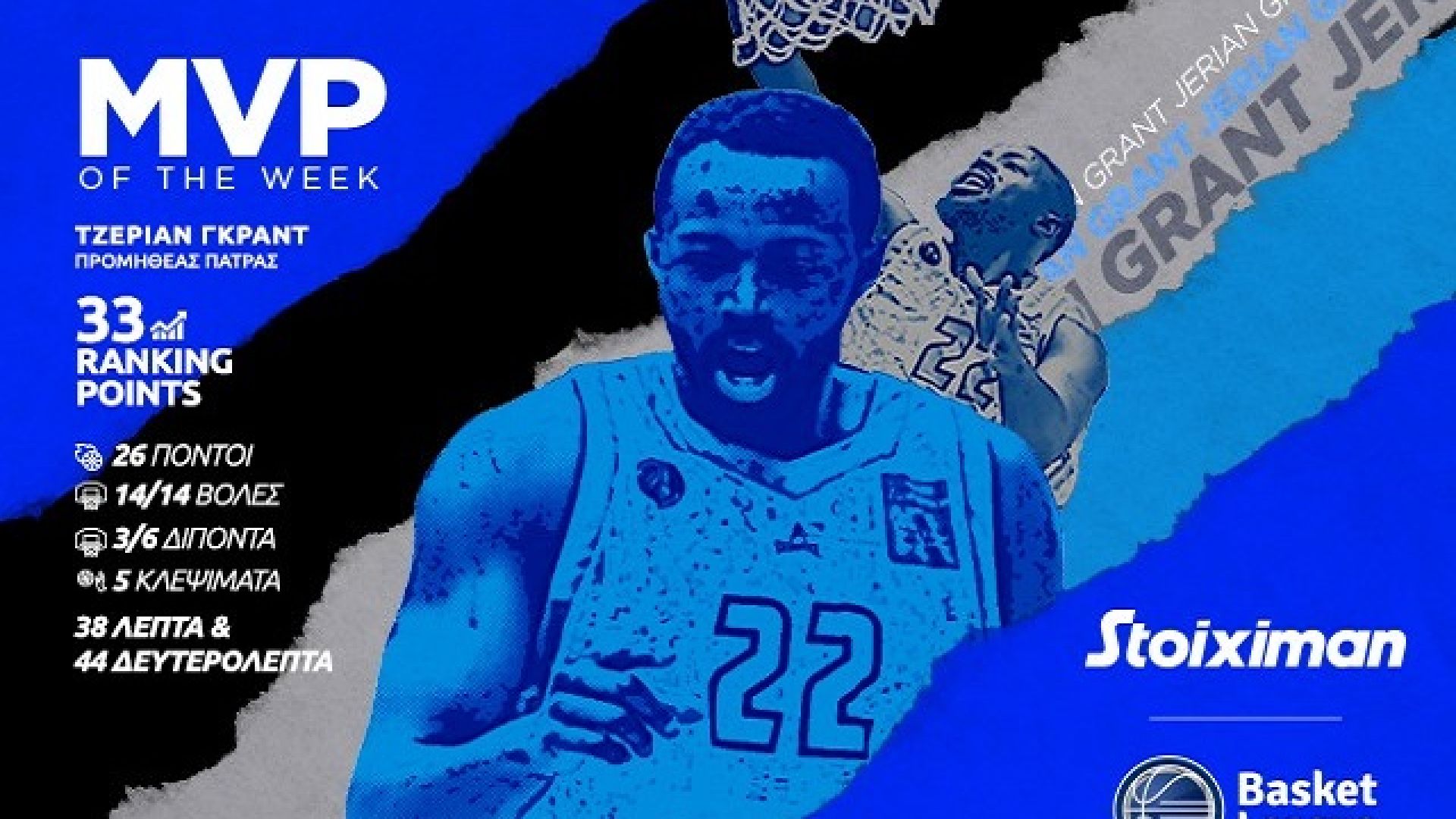 «Stoiximan MVP of the Week αναδείχθηκε ο Τζέριαν Γκραντ με εμφάνιση βγαλμένη από το NBA, στο όποιο έχει αγωνιστεί σε 287 αναμετρήσεις στην καριέρα του μέχρι στιγμής!