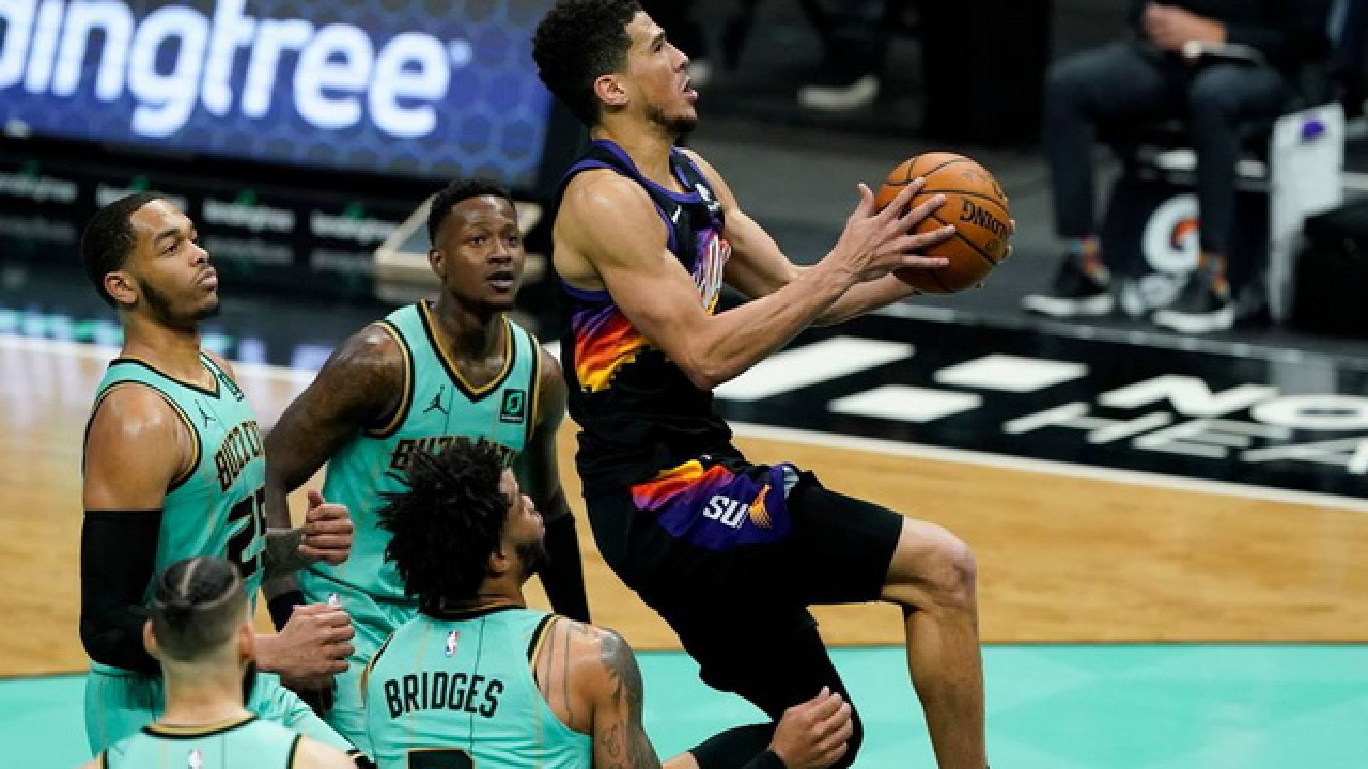 Εξαιρετική εμφάνιση από τον Ντέβιν Μπούκερ, που με 35 πόντους… εκτέλεσε τους Χόρνετς, χαρίζοντας την νίκη στους Σανς.