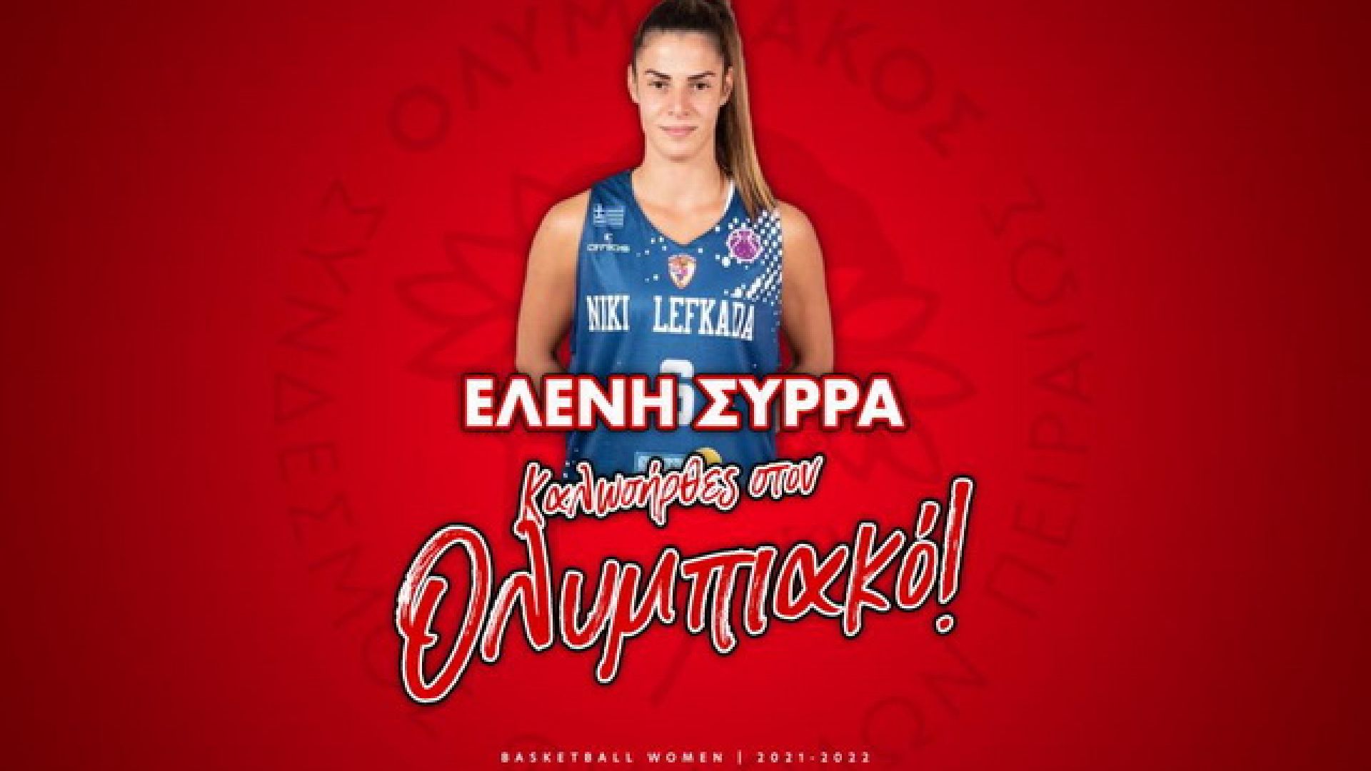 O ΟΛΥΜΠΙΑΚΟΣ Σ.Φ.Π. ανακοινώνει την έναρξη της συνεργασίας του με την Ελένη Σύρρα. Η Ελληνίδα γκαρντ (ημ. γέννησης, ύψος 1,70μ.) υπέγραψε το συμβόλαιο της και εντάσσεται στο δυναμικό της ομάδας Μπάσκετ Γυναικών του συλλόγου μας.