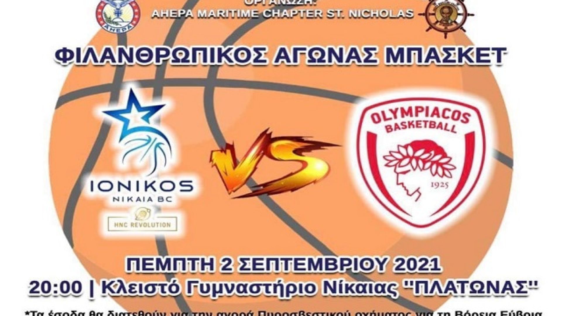 «Ο Ionikos Nikaia BC HNC Revolution ανακοινώνει ότι από σήμερα (31/8) θα μπορούν οι φίλαθλοι να προμηθευτούν τα εισιτήρια τους για τον φιλικό αγώνα με τον Ολυμπιακό της Πέμπτης (2/9, 20:00) που έχει φιλανθρωπικό χαρακτήρα και γίνεται υπό την αιγίδα του AHEPA MARITIME CHAPTER ST. NICHOLAS.