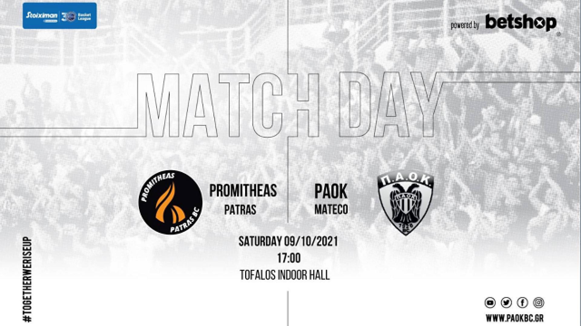 Η ομάδα ολοκλήρωσε την προετοιμασία της για τον αγώνα του Σαββάτου, με μία πρωινή προπόνηση στο PAOK Sports Arena και αμέσως μετά αναχώρησε για την Πάτρα. Στην αποστολή του ΠΑΟΚ mateco, της οποίας ηγούνται ο πρόεδρος Θανάσης Χατζόπουλος και ο αντιπρόεδρος Βασίλης Τριλυράκης, συμμετέχουν οι καλαθοσφαιριστές: Αντρέας Χριστοδούλου, Malcolm Griffin, Μιχάλης Καμπερίδης, Νίκος Καμαριανός, David DiLeo, Απόστολος Ρούμογλου, Josh Carter, Marvin Jones, Βασίλης Τολιόπουλος, Βλάντο Γιάνκοβιτς και Derek Ogbeide.