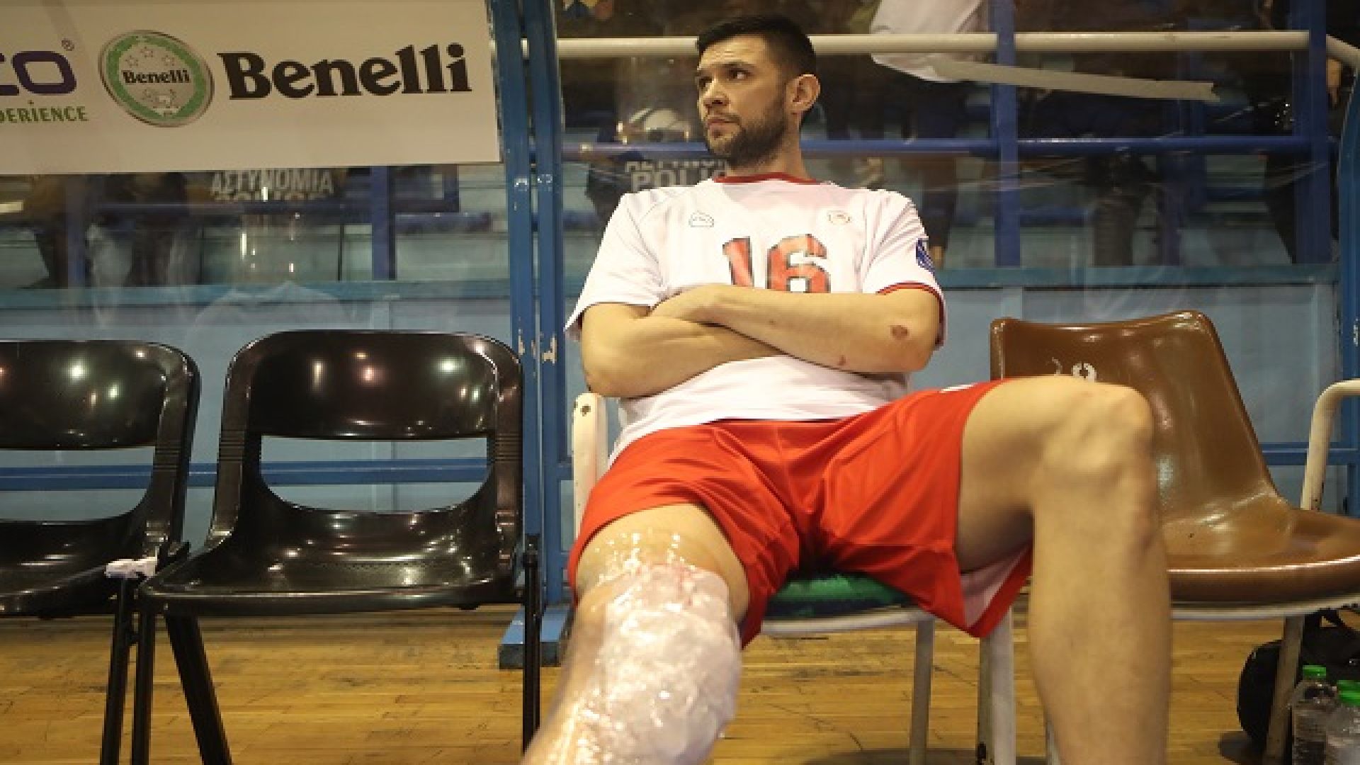 O Κώστας Παπανικολάου αποχώρησε από το παρκέ, στο ξεκίνημα της αναμέτρησης των ερυθρόλευκων με τον Ηρακλή, καθώς τραυματίστηκε στο δεξί πόδι.