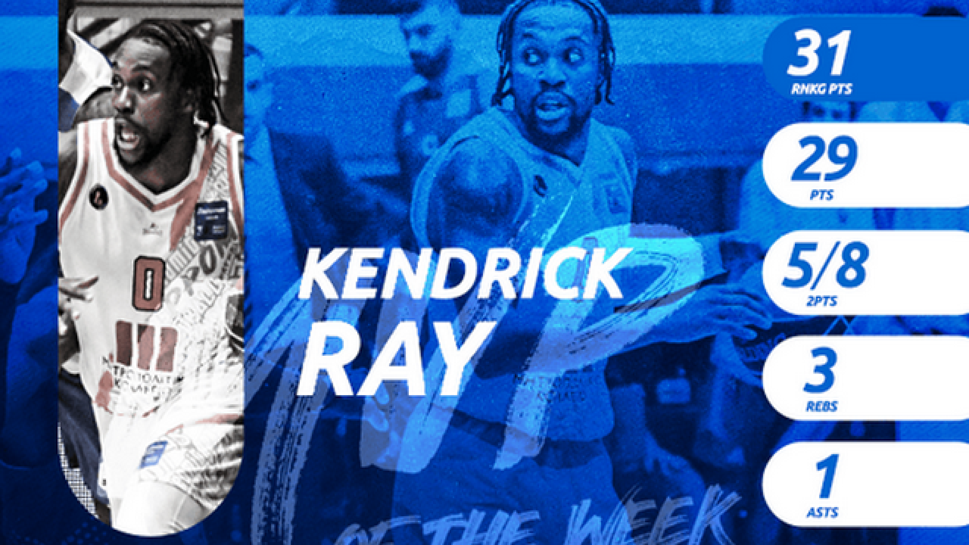 Η εξαιρετική εμφάνιση του Κέντρικ Ρέι και οι 31 βαθμοί στο σύστημα ranking (29 πόντοι με 4/4 βολές, 5/8 δίποντα, 5/8 τρίποντα, 3 ριμπάουντ, μια ασίστ) που συγκέντρωσε, στην νίκη του Προμηθέα επί της Λάρισας, χάρισαν στον 27χρονο Αμερικανό το βραβείο του MVP της 4ης αγωνιστικής της Basket League.