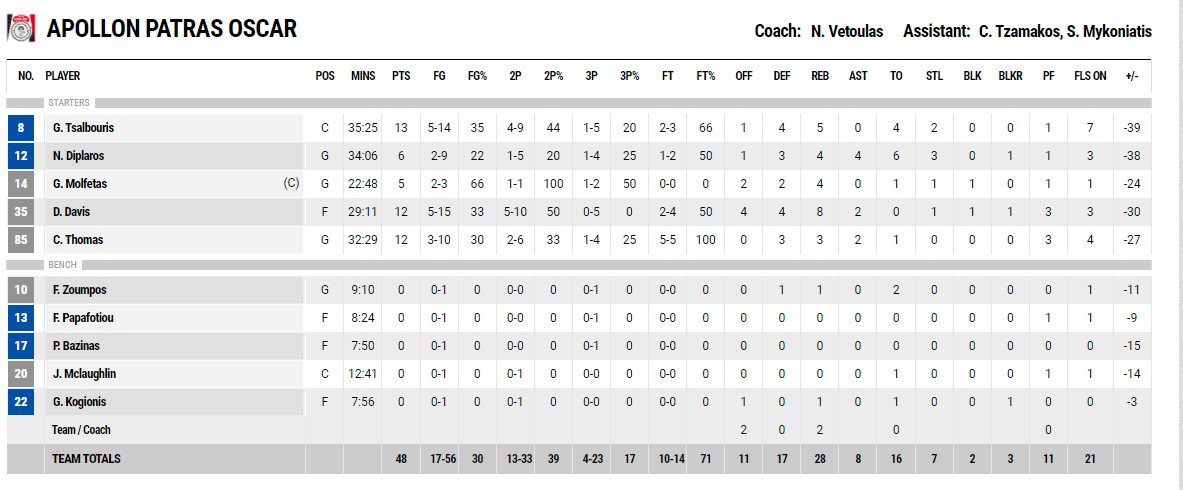 Ξεχώρισαν: Ο Μποχωρίδης με 17 πόντους και ο Τσαλμπούρης με 13 πόντους
