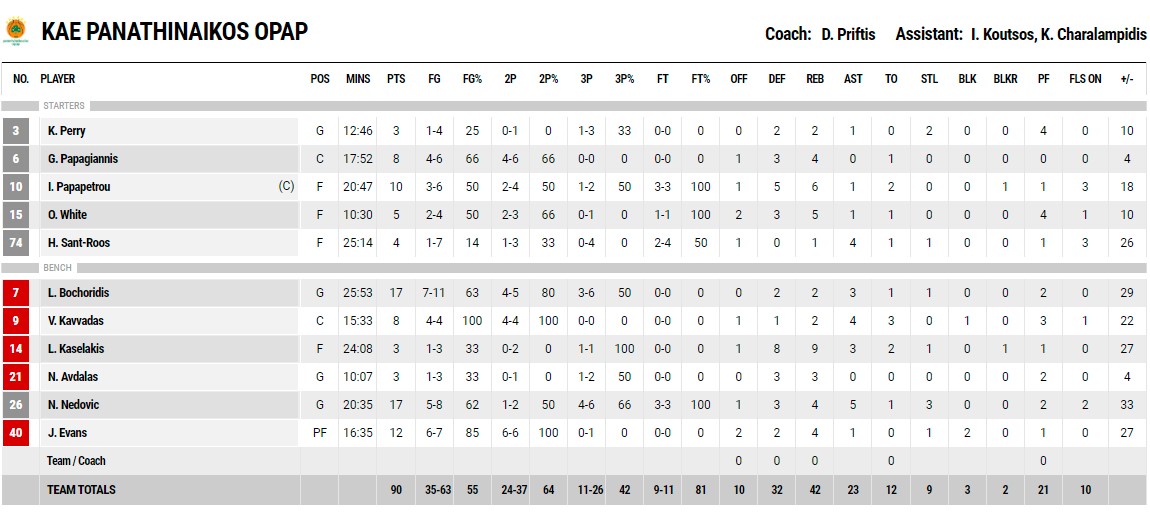 Η μεγαλύτερη διαφορά: +42 (48-90) για τον Παναθηναϊκό
