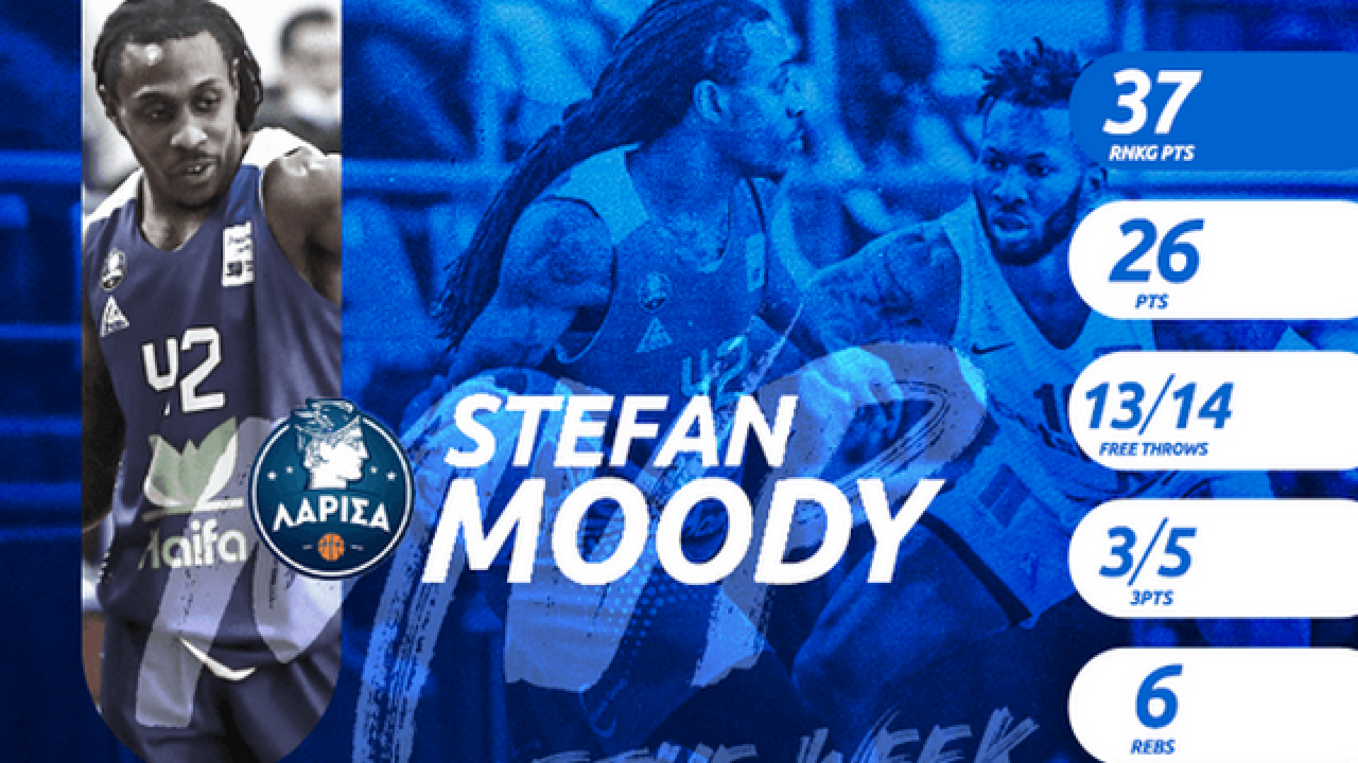 Η εξαιρετική εμφάνιση του Στέφαν Μούντι, που οδήγησε την Λάρισα στην νίκη μέσα στην Νίκαια επί του Ιωνικού, την τρίτη συνεχόμενη για τους Θεσσαλούς, τον έχρισε MVP της εβδομάδας, για την Basket League.