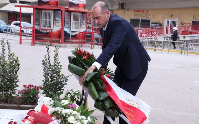 Ο πρόεδρος του Ολυμπιακού κατέθεσε στεφάνι, τιμώντας με αυτόν τον τρόπο, τους αδικοχαμένους 21 της 8/2/81.