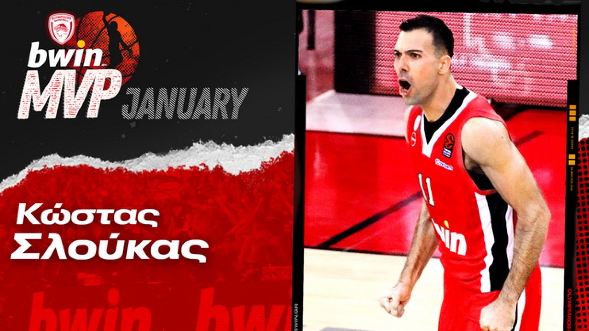 Η bwin, Μεγάλος Χορηγός της ΚΑΕ Ολυμπιακός, αναδεικνύει κάθε μήνα τον πολυτιμότερο παίκτη της ομάδας, με βάση τους πόντους που μάζεψε στο ranking, στις υποχρεώσεις των Πειραιωτών στη EuroLeague και στο ελληνικό πρωτάθλημα!