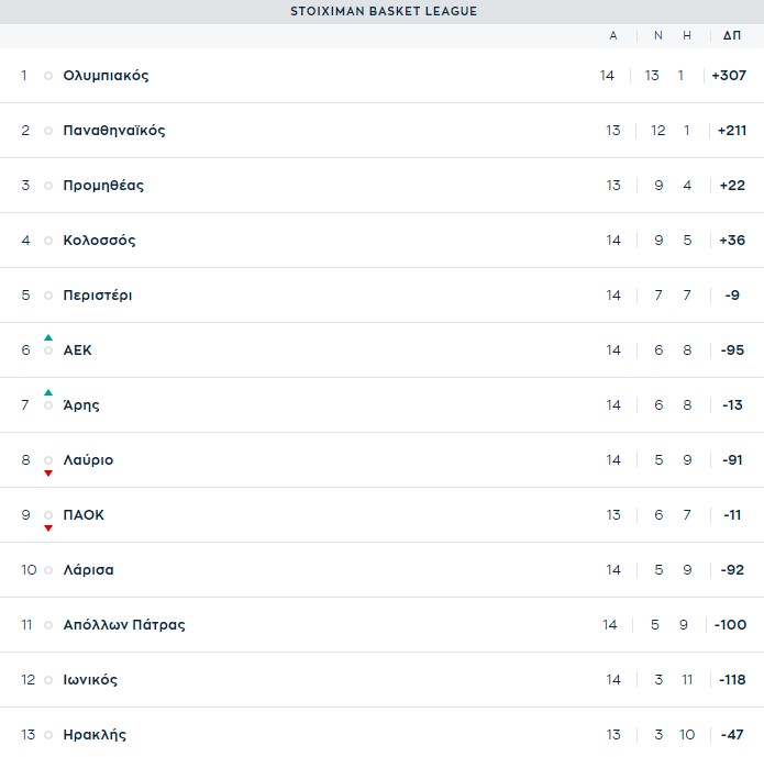 O Ολυμπιακός και ο Παναθηναϊκός μετά τις εντός έδρας νίκες τους απέναντι σε Λαύριο και Ηρακλή αντίστοιχα, παραμένουν στις δύο πρώτες θέσεις του βαθμολογικού πίνακα.