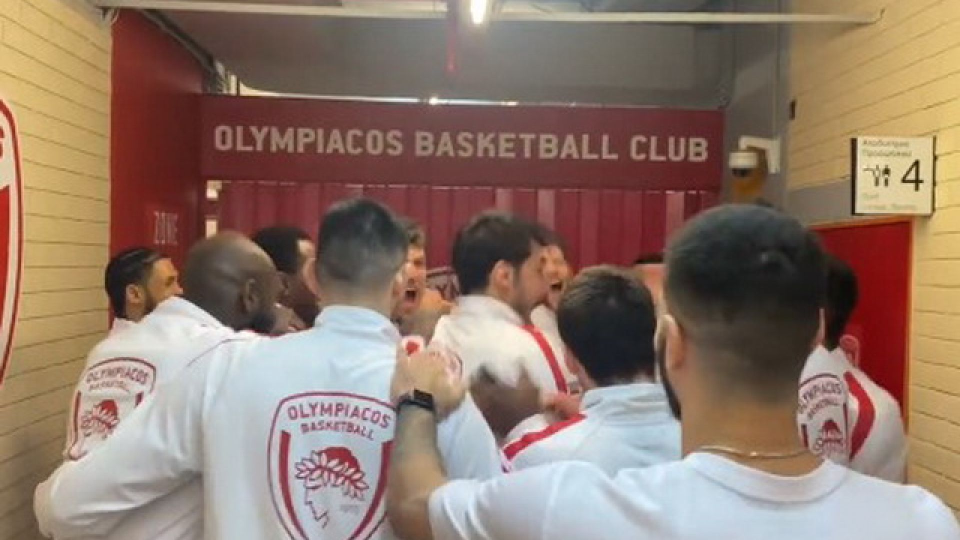 Η παράδοση που θέλει τους παίκτες του Ολυμπιακού να γίνονται… ένα κουβάρι, πριν την έναρξη των αγώνων τους συνεχίστηκε. Έτσι, ο αρχηγός Γιώργος Πρίντεζης έδωσε το σύνθημα και οι συμπαίκτες του ακολούθησαν, στο «ερυθρόλευκο» τελετουργικό που τηρείται με… ευλάβεια στα αποδυτήρια.