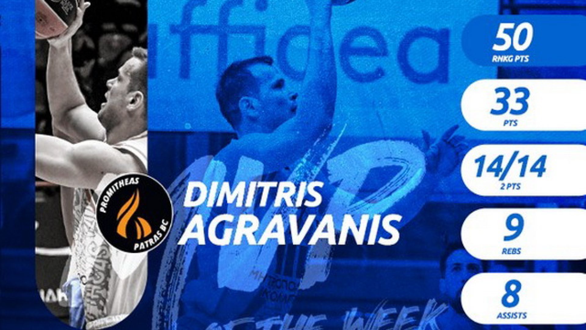"Ο Δημήτρης Αγραβάνης στην εντός έδρας νίκη του Προμηθέα επί του Ιωνικού έγραψε ιστορία καταρρίπτοντας με 14/14 δίποντα το ρεκόρ του Νίκου Γκάλη, που είχε 13/13 δίποντα στο ματς Παναθηναϊκού – ΑΕΚ 91-63 στις 15 Ιανουαρίου 1994, και αναδείχθηκε Stoiximan MVP of the Week!