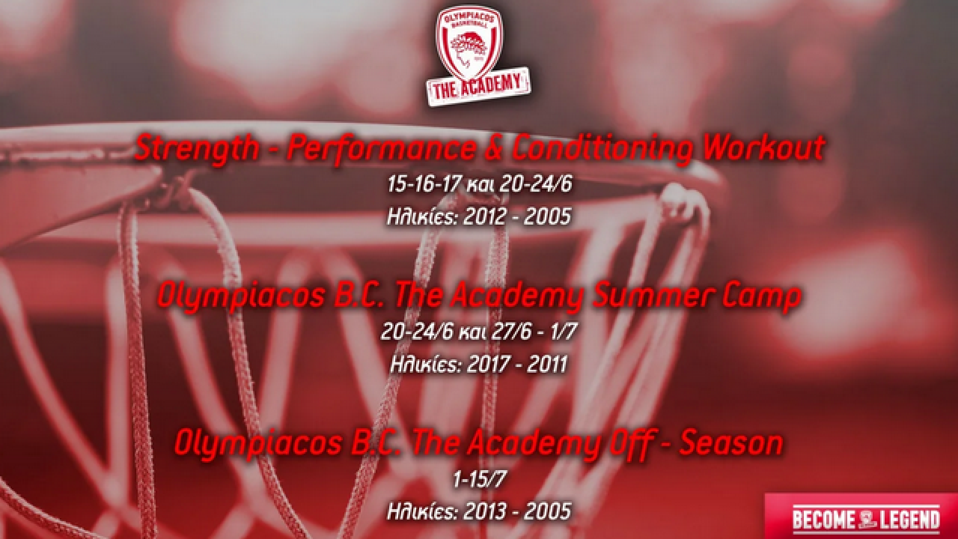 Olympiacos The Academy Summer Camp 20-24/6 και 27/6 -1/7.